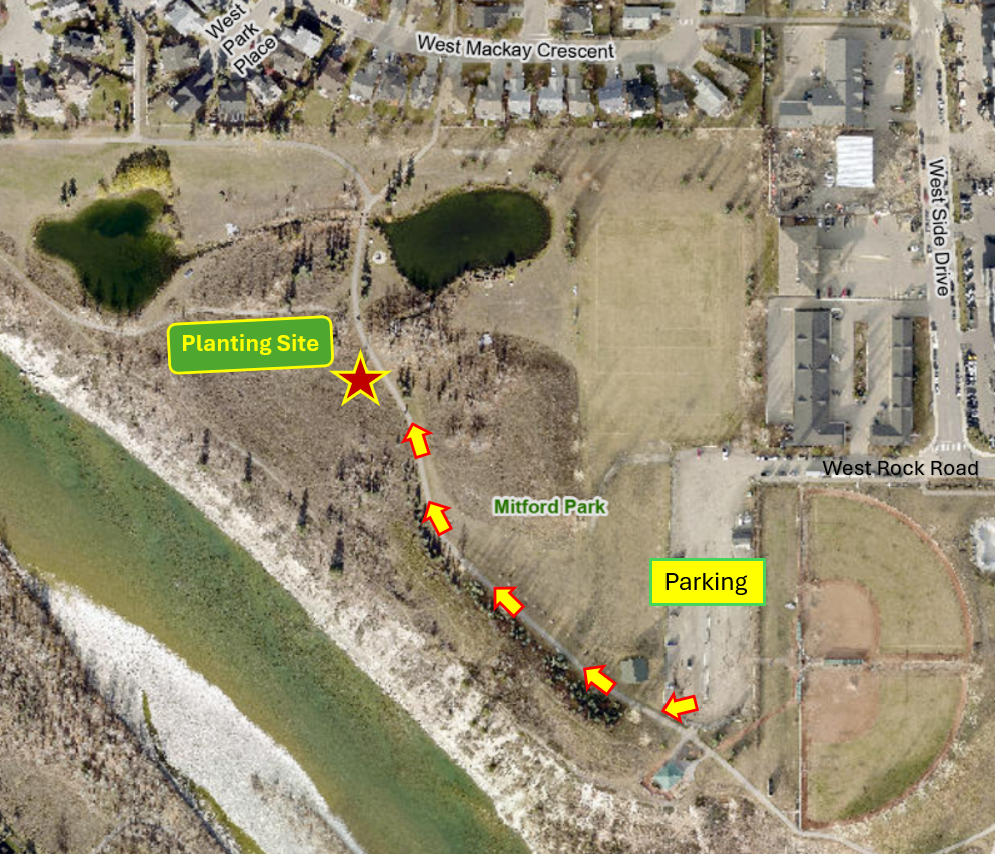On site Volunteer Check-In: starts at 9:00 am— look for the white canopy. Parking available at the Mitford Park parking lot – walk over to the site. Porta-Potties are available in the parking lot.